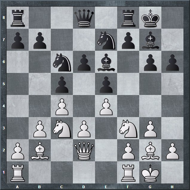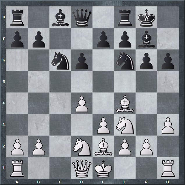 Dd7 13. Sh4 (das Gegengift) Kh7 14. f4. Aufgabe für den Leser: