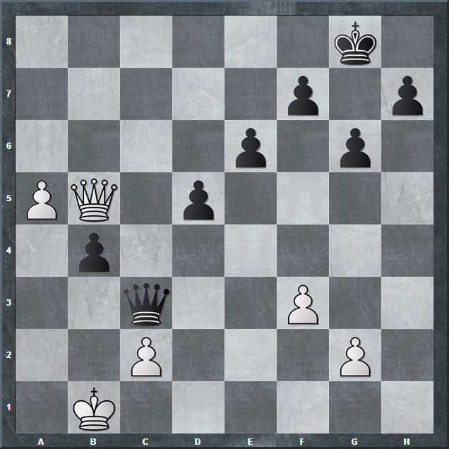 erreicht mit g- und h-Bauer gegen f- und h-Bauer. Aber Weiß zog ewig