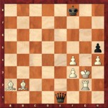 hatte soeben 1. … De1+ gespielt. Es folgte 2. Kh3 Dh1+, und der arg nervös