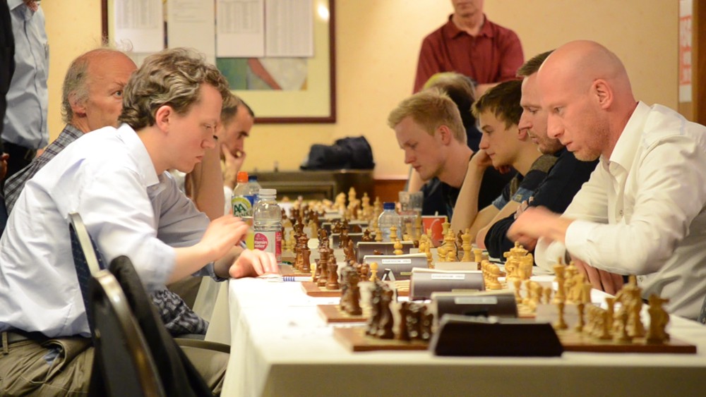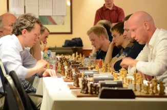 Die ersten sechs Bretter des A-Turniers und die ersten beiden des B-Turniers