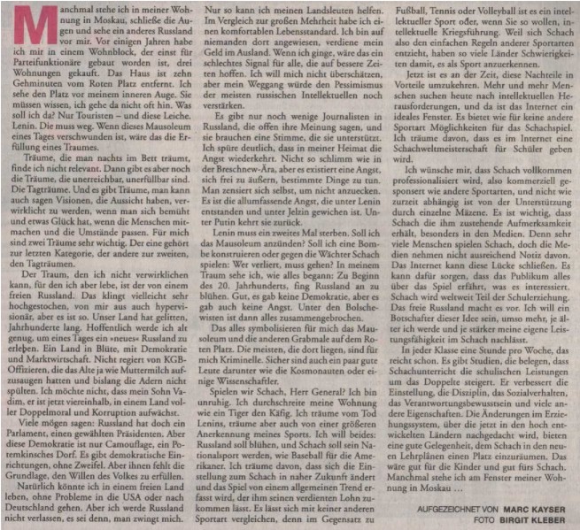 von Mr. Kasparov zur politischen Situation in seiner Heimat Russland. Auch
