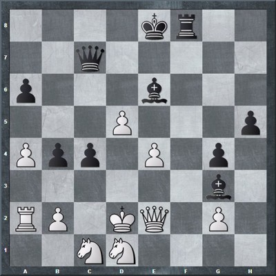 Sebastian 33. … d5! 34. cxd5 c4 35. De2 Lg3+ 36. Kd2 und Diagramm 2 wurde