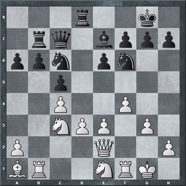 g4, und Schwarz muss zeigen, wo er Gegenspiel bekommt. 20. … Se8
