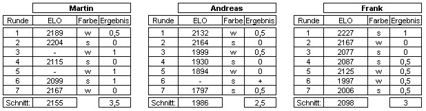 alle drei konnten wir punkten, Martin und Andreas erreichten Remis, ich