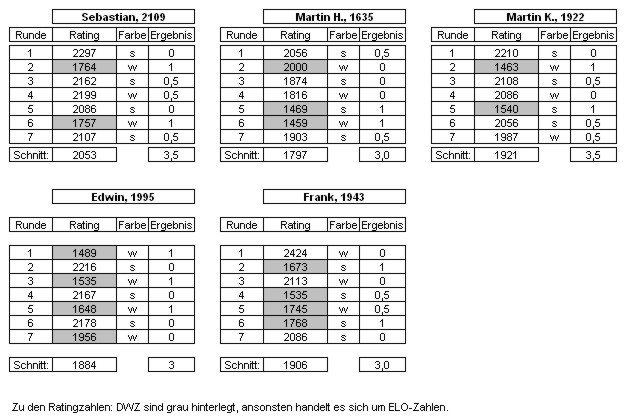 anderen kamen auf 3 Zähler. Für Martin K. zahlte sich seine ELO