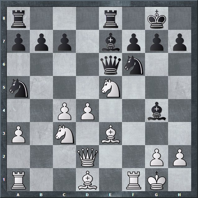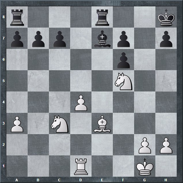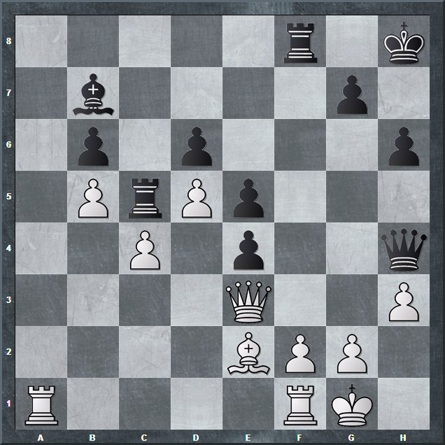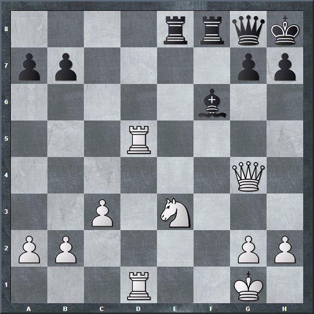 De3 e4 29. Sg5 Ld4. Nun ein schönes Finale: 30. Dd2 e3 Aufgabe.