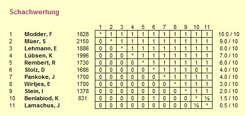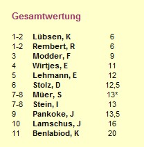 ein. Edwin wurde Dritter vor Keno. Hier die Tabelle der Schachwertung,