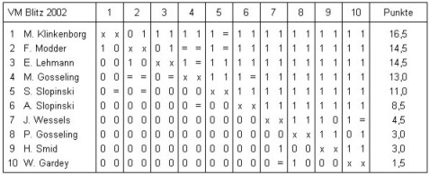 der Vereinsblitzmeister für das vergangene Jahr ermittelt. Zehn Spieler