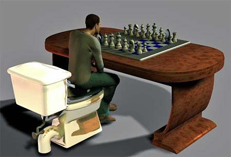Nigel Short testet die keramische Abteilung bei einem Turnier. Man beachte