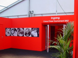 besagten Zelt anschauen, wo die Partien auf einer Bühne kommentiert