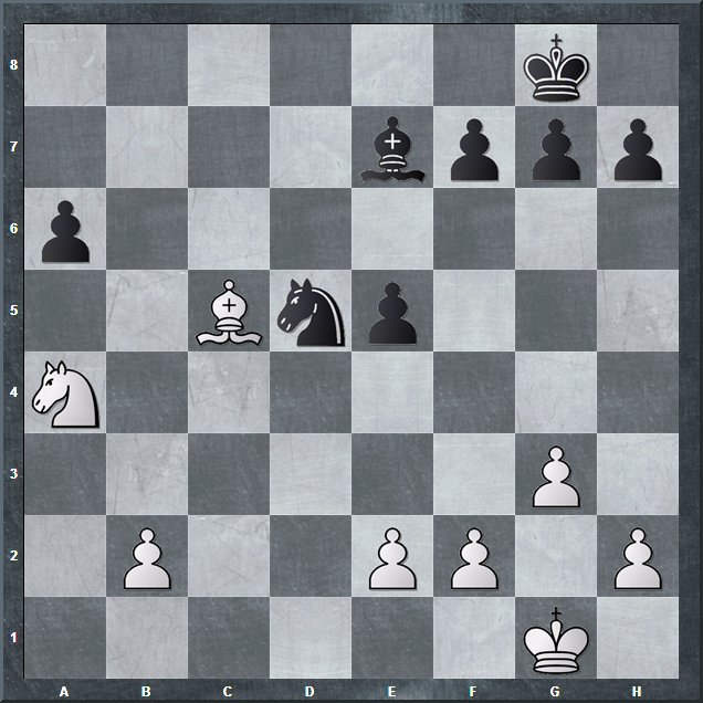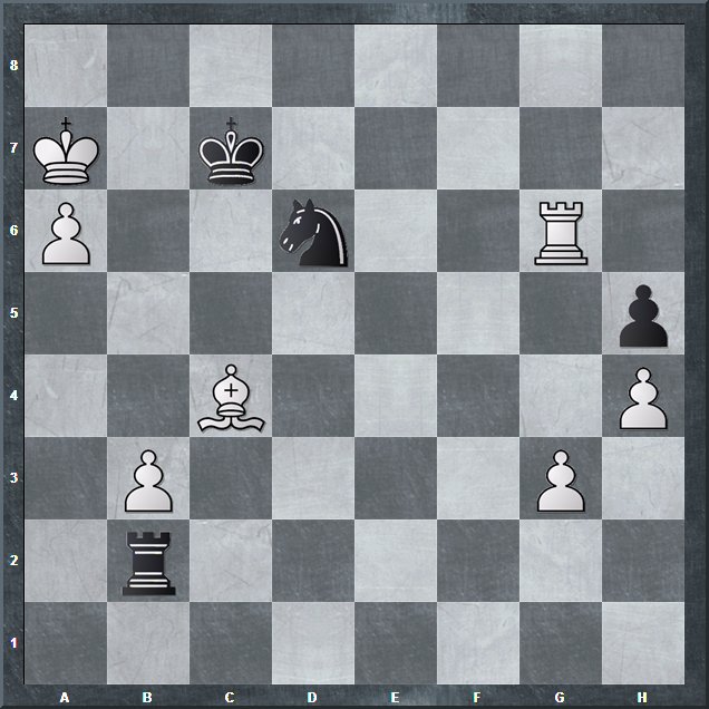 es folgte 73. Le6? Sb5#. Man sollte anmerken, dass Weiß für